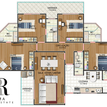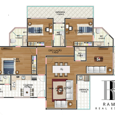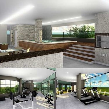Os apartamentos são contemplam entrada social e de serviço, uma ampla cozinha com área de serviço e banheiro de serviço. Sala em dois ou três ambientes, sacada gourmet com churrasqueira. Opção de quarto/home-office, lavabo, e três amplas suítes, todas com varanda.