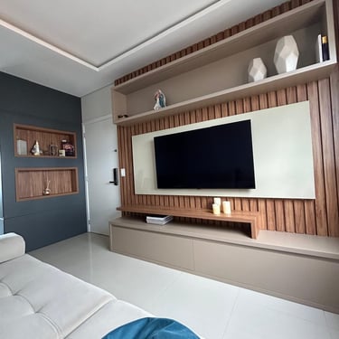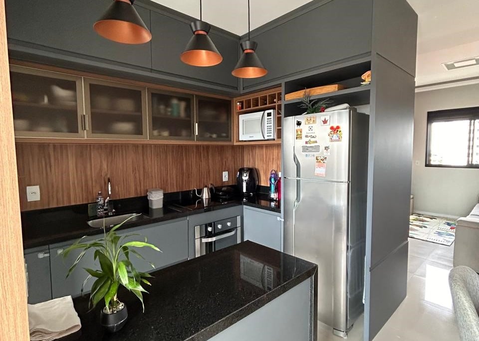 Apartamento lindamente mobiliado, com 3 quartos bem planejados, sendo 1 ampla suíte com sacada. Sala de estar com painel decorativo p/ tv com nichos e gavetões. Sala jantar integrando com uma moderna cozinha e sacada gourmet com churrasqueira. A cozinha planejada está equipada com cooktop de indução e forno elétrico embutidos. Área de serviço com bancada em granito, armário e acesso a sacada. Banheiros com armários, metais e bancadas com cubas esculpidas em mármore travertino. Imóvel contando com 2 vagas de garagem privativas e cobertas.
