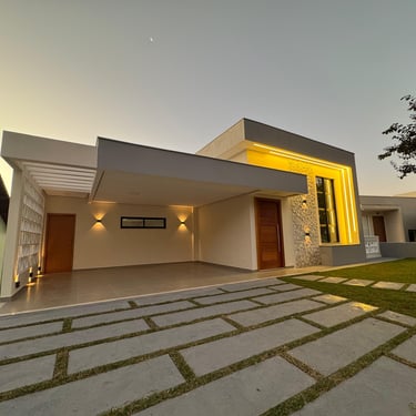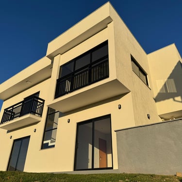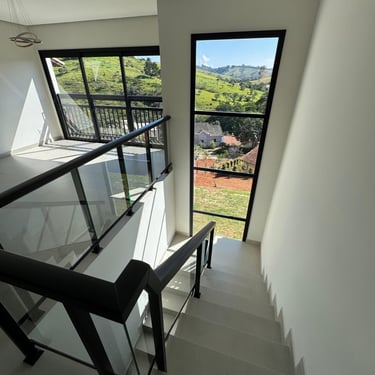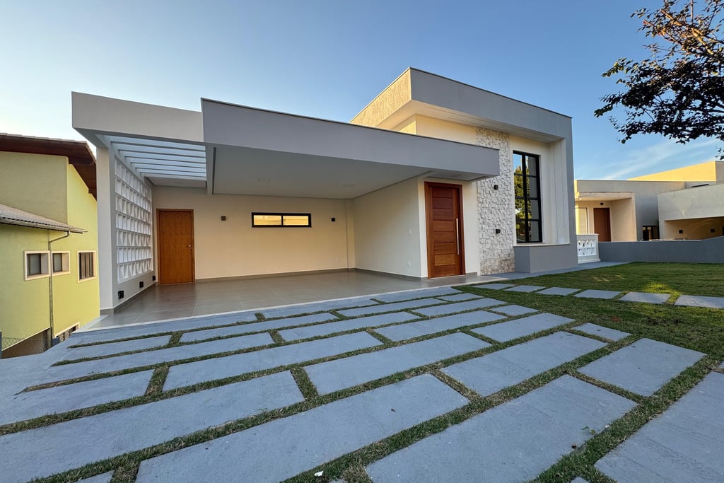 A casa possui 3 amplas suítes, sendo 2 com closet. Um ampla sala de estar/tv com um imponente pé direito de 4,5m. A cozinha em conceito aberto está conjugada com sala de jantar/copa, que possui uma incrível varanda integrada para tomar café da manha com vistas deslumbrantes. Lavabo, home-office, área de serviço, amplo salão com churrasqueira, banheiro social e acesso ao quintal.