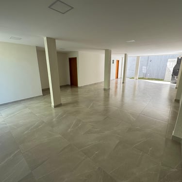 Os acabamentos são nobres, com pisos em porcelanato padrão 1,20m na sala. Cozinha ampla com ilha e bancada em granito São Gabriel. Salão de festas amplo com churrasqueira e bancada em granito. Banheiro externo.