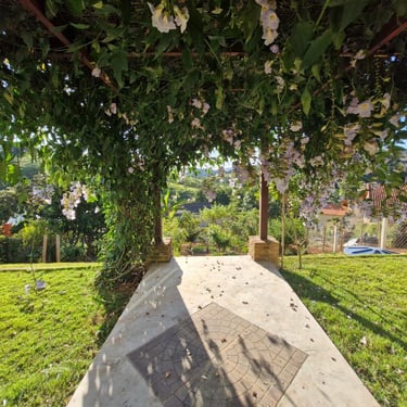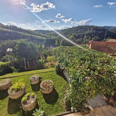 Há também uma amplo pátio com linda vista para as montanhas que compõem a Serra da Mantiqueira, além de possuir também um jardim com lindo pergolado, e um amplo quintal com diversas árvores frutíferas e horta.