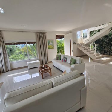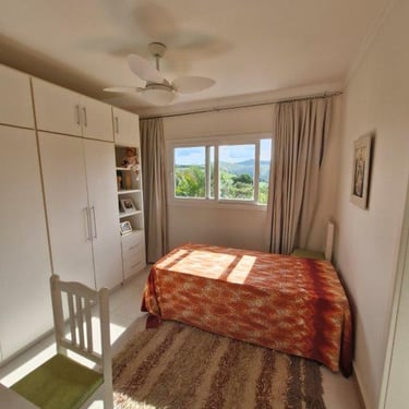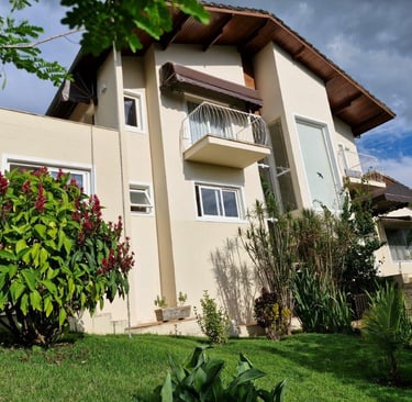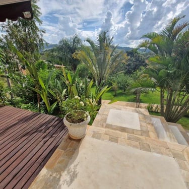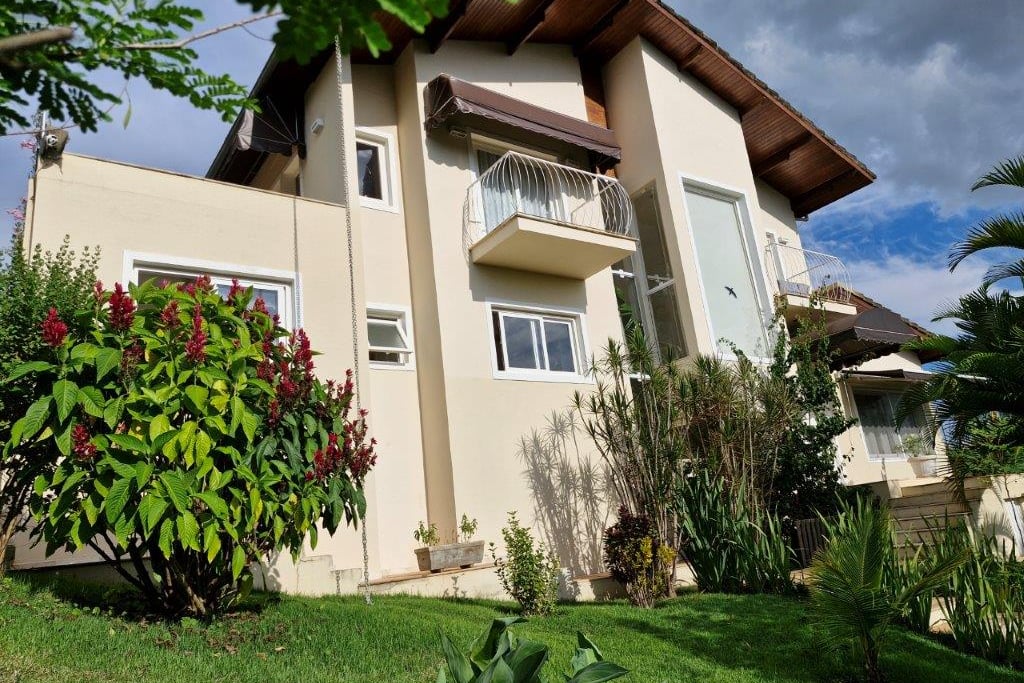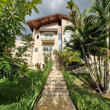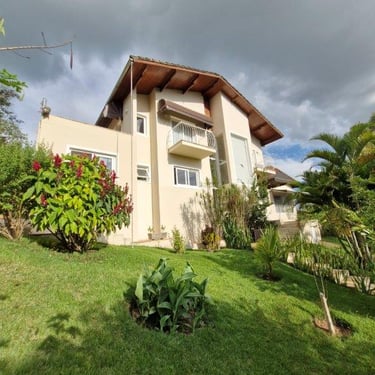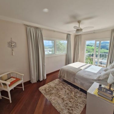 Este imóvel possui a possibilidade de ser utilizado como duas residências. A main house é distribuída em ampla sala em 2 ambientes com lareira, lavabo, uma ampla suíte master com closet e hidromassagem, quarto multiuso, escritório/home-office. Além de diversas varandas com vista para as montanhas, uma bem equipada cozinha planejada em conceito aberto, área de serviço, terraço descoberto com vista panorâmica, sala de tv/sala de meditação ou yoga, garagem fechada para 3 veículos. Lavanderia e DCE.