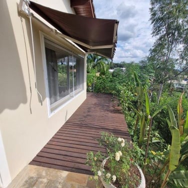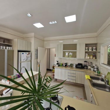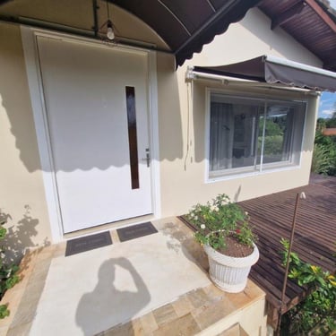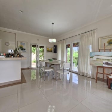Esta casa conta com uma outra residência anexa, que tanto pode ser integrada a residência principal, quanto pode ser separada para ser usada como guest house, pois ambas de comunicam por um corredor que contém uma porta de separação.