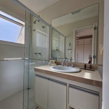 Todos os acabamentos são nobres, com bancadas em pedras de granitos e mármores, pisos em porcelanato polido e madeira nos ambientes, e esquadrias das janelas em PVC com isolamento térmico-acústico (sistema padrão Weiku). Aquecimento de água central (gás/boiler).