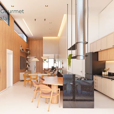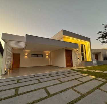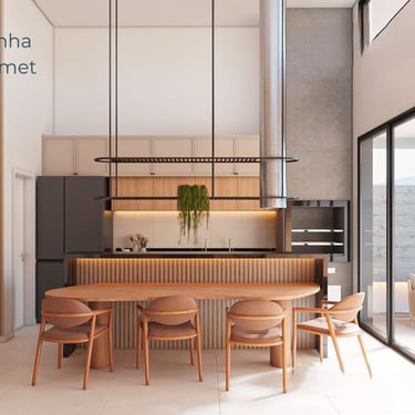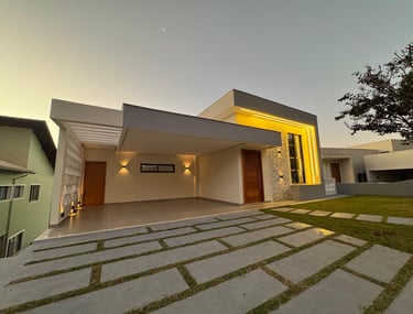 Hall de entrada amplo, com pé direito alto e imponente em toda a extensão da área social. Sala de estar e jantar amplas, integradas com Cozinha Gourmet. Lavabo, despensa, lavanderia com estendal. 4 amplas Suítes, sendo uma Suíte Master com Closet e banheira de hidromassagem. Área privativa da casa com 202,4m².