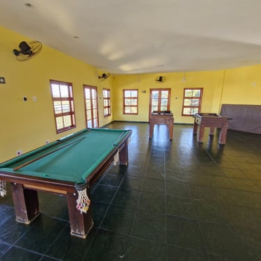 Piscina adulto-infantil • sauna • quadra poliesportiva • quadra de tênis • playgroud/parquinho • campo de futebol • vestiários • salão de festas e salão de jogos. Além de quiosques com churrasqueira • mirantes • espaço para caminhadas e contato com a natureza