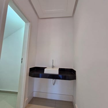 Cozinha ampla, com bancada em granito, lavanderia com pequeno terraço para secar roupas. Lavabo, escada em mármore travertino e espaço para Home Office. Três dormitórios com armários embutidos, sendo uma suíte com Closet e banheira de hidromassagem.
