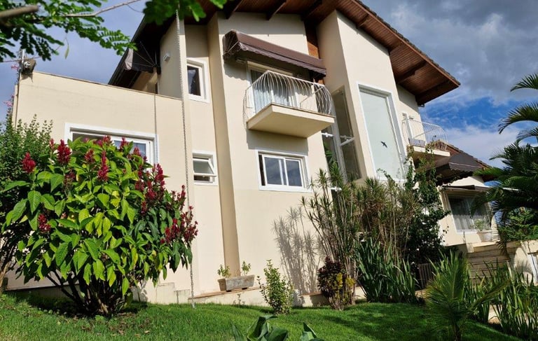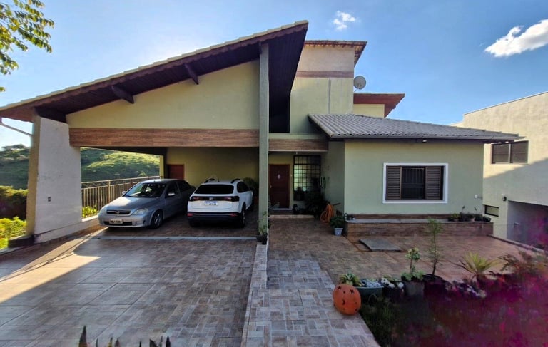 Aconchegante casa com aproximadamente 370m² de área total construída, no Condomínio Moradas da Serra, em bairro nobre de São Lourenço. Com 4 Suítes, sendo uma Térrea e outra Master com closet, jazuzzi e varanda. Acabamentos nobres, com ampla varanda acessando a cozinha, copa, salas e quintal. Piscina privativa aquecida com ducha e hidro. Edícula Gourmet com churrasqueira, fogão e forno à lenha, e um lindo Ático com sala íntima de TV e Copa/adega.
