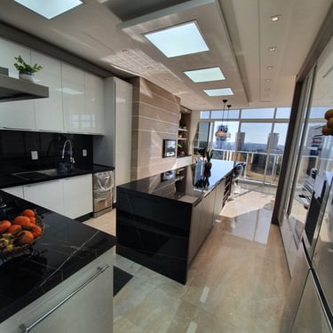 〽️São 472m² de encanto, sendo 55m² das 3 vagas individuais de garagem, e 322m² de área privativa exclusiva do apartamento. Distribuído em 4 amplas suítes (sendo uma suíte master com hidromassagem, closet feminino e masculino), todas avarandadas. Sala de Home Theater e Lareira, Ampla Sala de Estar-Social, Sala de Jantar com varanda, Espaço Gourmet e Kitchen integrados, Hall privativo com elevador e lavado, despensa e ampla area de serviço com bwc e entrada individual.