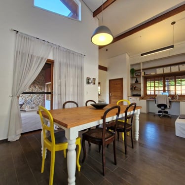 The property has a small attached apartment, containing a suite, living/dining room integrated with the kitchen, furnished and equipped. This space can be used to receive visitors/guests, or can be rented on a seasonal basis through hosting platforms (Wimdu, Vrbo, Airbnb, Homestay, etc.).