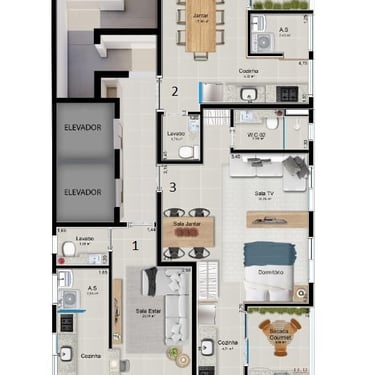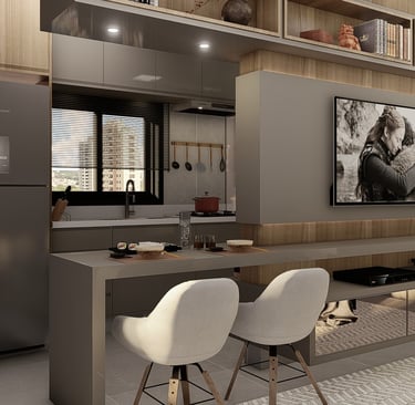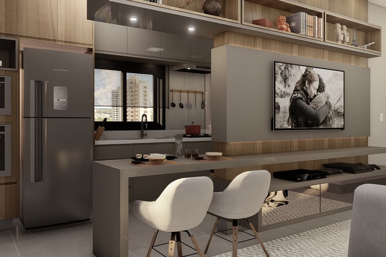Integrated living room, pantry and kitchen, in an open concept with two suites, gourmet balcony with barbecue and parking space.