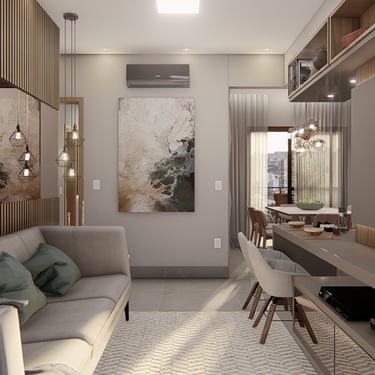 Integrated living room, pantry and kitchen, in an open concept, balcony and a parking space.