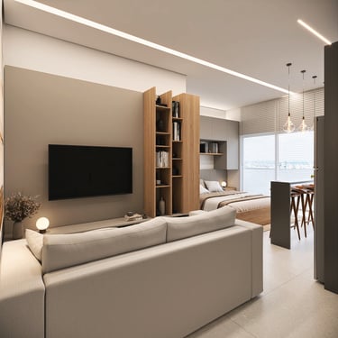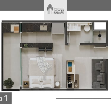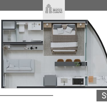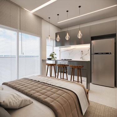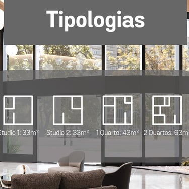 • Studio I e II de 33m² • Apto de 1 Quarto com 43m² • Apto de 2 Quartos com 63m²