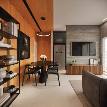 Sala de estar, jantar e cozinha integradas, em conceito aberto, lavabo, 1 suíte, sacada, AS, e uma vaga de garagem. 37,9 à 43,4m² de área privativa da unidade