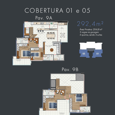 Coberturas Duplex de 4 Suítes - finais x1 e x5