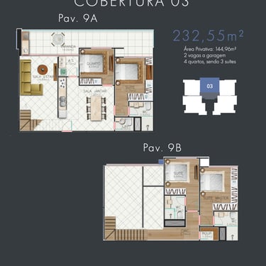 Coberturas Duplex de 3 Suítes - finais x2 e x4