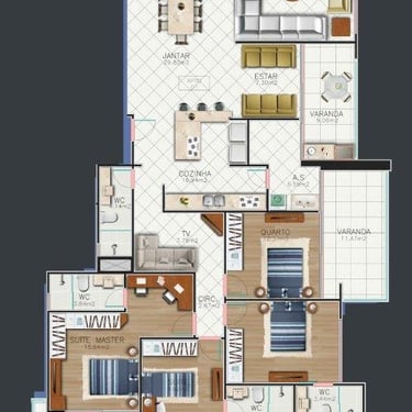 Apartamentos finamente acabados, com opção de 3 Suítes + Lavabo, 2 Suítes + Lavabo e Cobertura Duplex com até 4 Suítes.